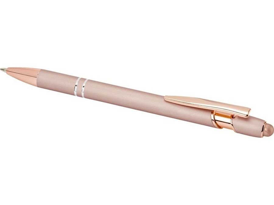 Шариковая ручка Nanna с покрытием из розового золота имеет корпус из переработанного алюминия и сенсорный стилус из силикона. Переработанный алюминий уменьшает количество отходов на свалках и помогает сохранять природные ресурсы для сокращения выбросов парниковых газов. Цвет чернил: синий. Длина непрерывной линии: 800 метров. Размер пера: 1,0 мм. Recycled Aluminium.