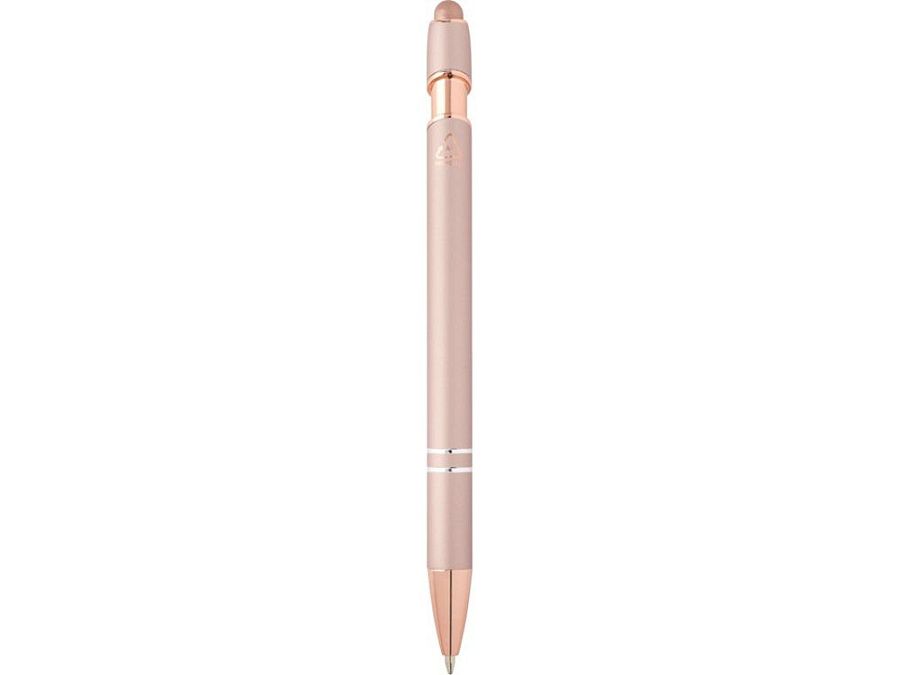 Шариковая ручка Nanna с покрытием из розового золота имеет корпус из переработанного алюминия и сенсорный стилус из силикона. Переработанный алюминий уменьшает количество отходов на свалках и помогает сохранять природные ресурсы для сокращения выбросов парниковых газов. Цвет чернил: синий. Длина непрерывной линии: 800 метров. Размер пера: 1,0 мм. Recycled Aluminium.