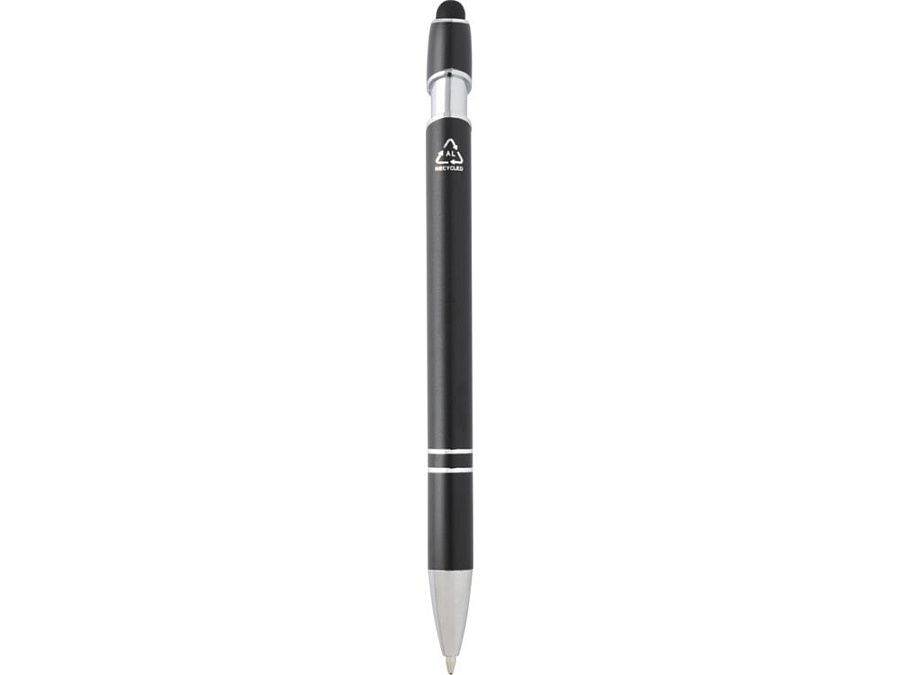 Шариковая ручка Kish с серебряным покрытием имеет корпус из переработанного алюминия и сенсорный стилус из силикона. Переработанный алюминий уменьшает количество отходов на свалках и помогает сохранять природные ресурсы для сокращения выбросов парниковых газов. Цвет чернил: синий. Длина непрерывной линии: 800 метров. Размер пера: 1,0 мм. Recycled Aluminium.