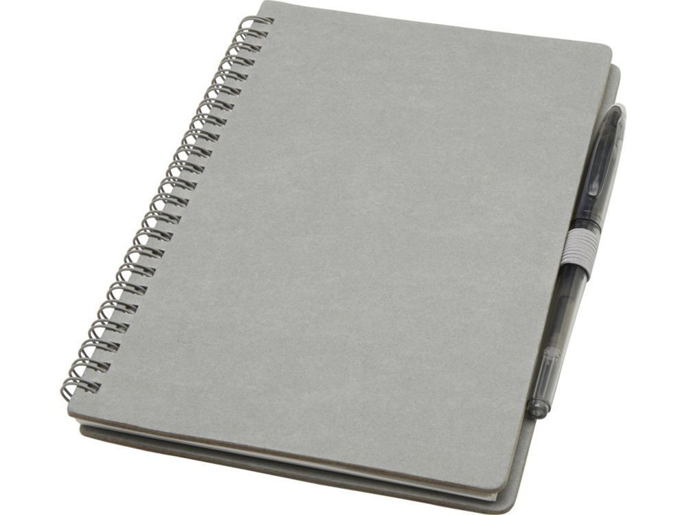 Многоразовый набор из ручки и блокнота в мягкой обложке из каменной бумаги. Блокнот имеет обложку из картона, закругленные углы и 32 листа линованной бумаги плотностью 120 г/м². В производстве каменной бумаги не используется дерево, а на сам процесс изготовления затрачивается гораздо меньше энергии в сравнении с производством переработанной или целлюлозной бумаги. Сзади имеется карман для хранения черной протирочной ткани (входит в комплект). Ручка из переработанного пластика с стираемыми чернилами, прозрачным корпусом, белым ластиком сверху и однотонной цветной рукояткой. Цвет чернил: черный. Длина непрерывной линии: 250 метров. Размер пера: 0,7 мм.