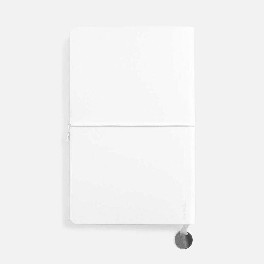 Ежедневник с гибкой обложкой, выполнен из материала Waltz, белый BB, дополнен ляссе в цвет обложки с металлическим шильдом.