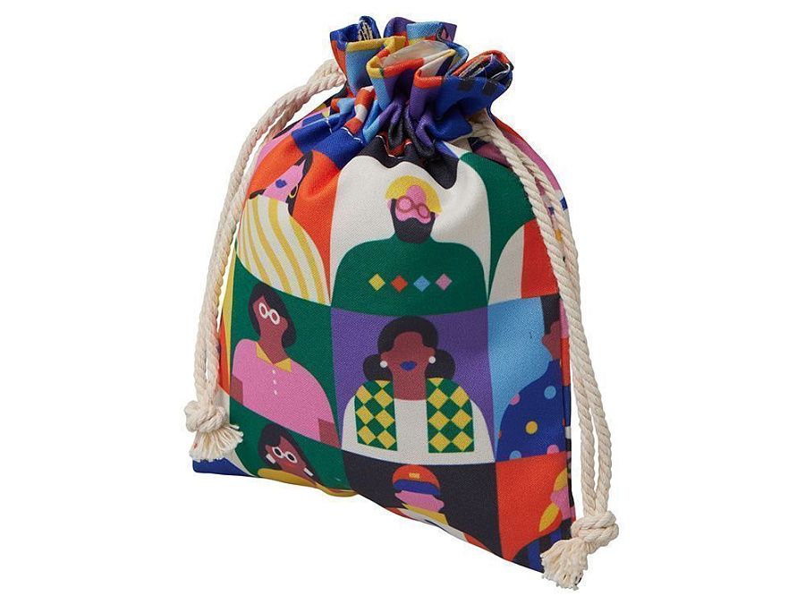 Стильная упаковка для украшений, выполненная из натурального хлопка. Маленький и удобный подарочный мешочек дополнен завязками. Текстурная ткань имеет естественный цвет неотбелённого хлопка, поэтому хорошо транслирует идеи экологичности и отказа от лишнего пластика. Полноцветная печать доступна на обеих сторонах.
