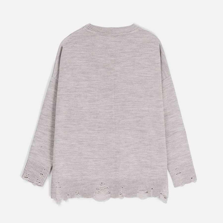 В дизайне мягкого джемпера с круглым вырезом Sharpick гранж-эстетика органично сочетается с милым акцентом — пушистым рисунком в виде озорного котика. Получается веселая вариация на тему того, откуда берется модная рваная одежда, а джемпер моментально создает настроение легкой несерьезности. Рваные края изделия добавляют современную нотку, а резинка на вороте, манжетах и по низу обеспечивает удобную посадку.