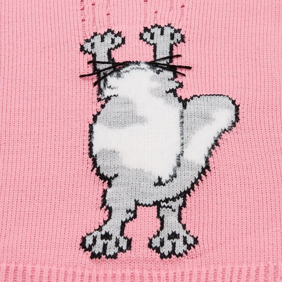 В дизайне мягкого джемпера с круглым вырезом Sharpick гранж-эстетика органично сочетается с милым акцентом — пушистым рисунком в виде озорного котика. Получается веселая вариация на тему того, откуда берется модная рваная одежда, а джемпер моментально создает настроение легкой несерьезности. Рваные края изделия добавляют современную нотку, а резинка на вороте, манжетах и по низу обеспечивает удобную посадку.