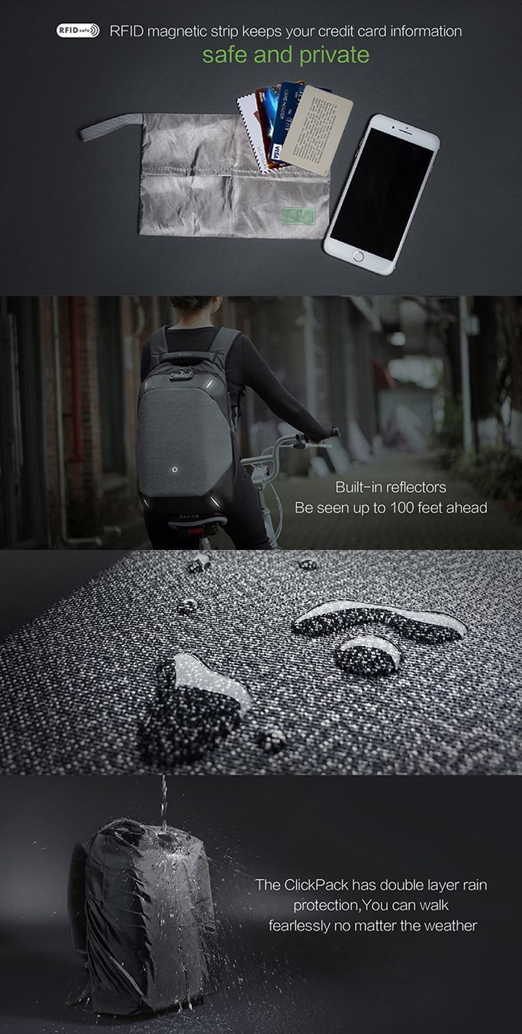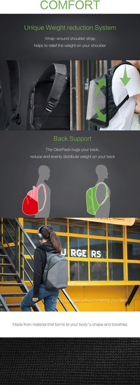 Конструкция рюкзака позволяет раскрыть его на 180°, чтобы аккуратно уложить в рюкзак много различных предметов. Дополнительно в основном отделении расположены еще 9 карманов различного функционала. 7 открытых карманов под мелочи, 2 кармана на молниях, в который можно поместить powerbank, т к в него приходит USB-кабель (600 мм, 0,5-0,7 А, 5В), соединенный с портом на внешней стороне рюкзака для легкого подключения к смартфону. Это оригинальная запатентованная система зарядки K EasyCharging 1.0 с помощью USB-порта, расположенного в борту рюкзака, и кабеля, идущего к powerbank, что делает мобильную зарядку более удобной.