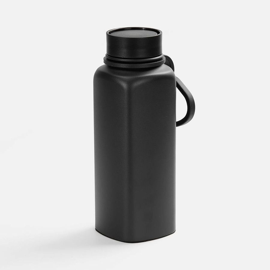 Термос оригинальной четырехгранной формы с надежной ручкой для переноски и удобным клапаном, который открывается и закрывается одним нажатием. Пить можно с любой стороны.