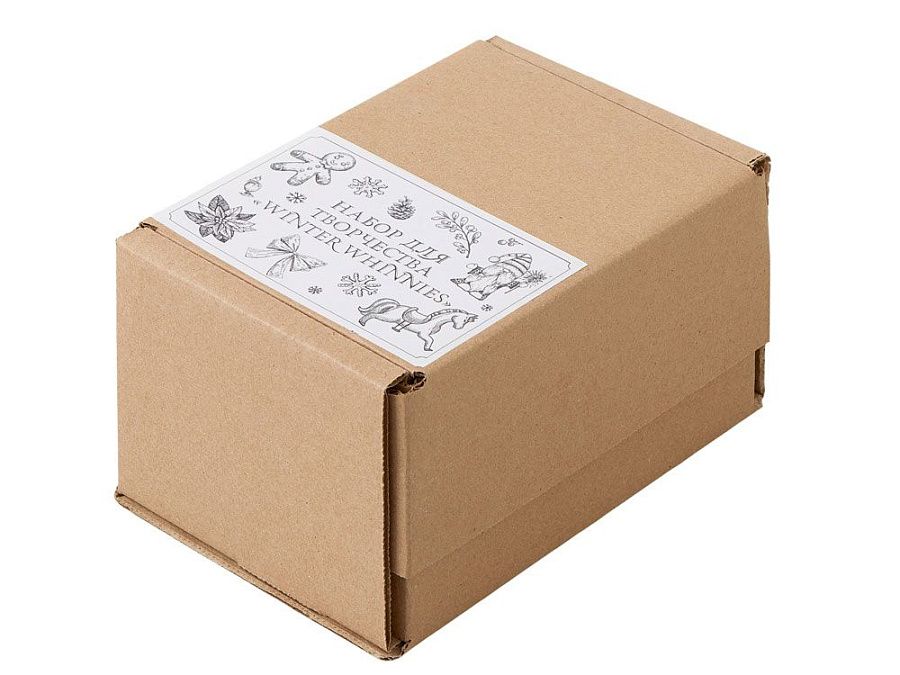 В набор входят три гипсовых фигурки — лошадка елочкой, гном подарочная коробка с пряничными человечками, а также акварельные краски и кисть.