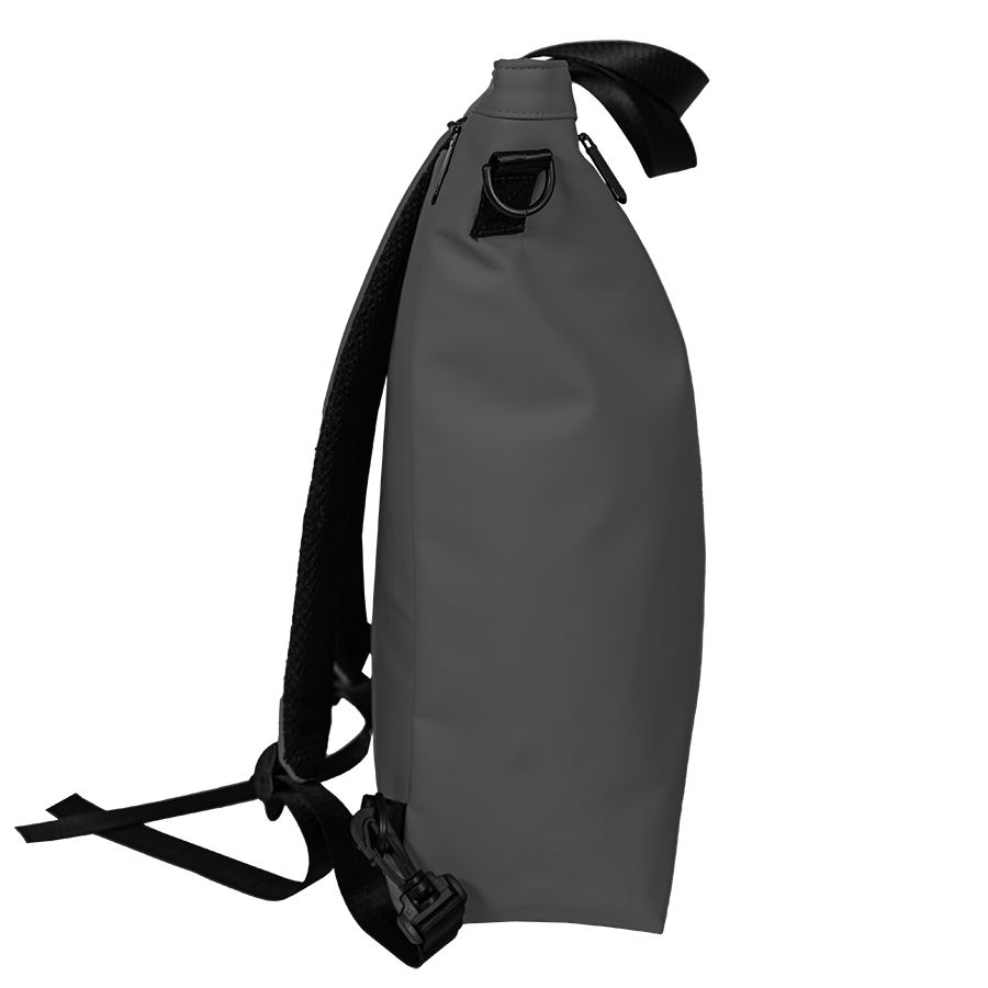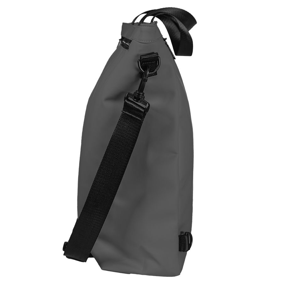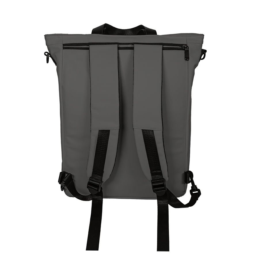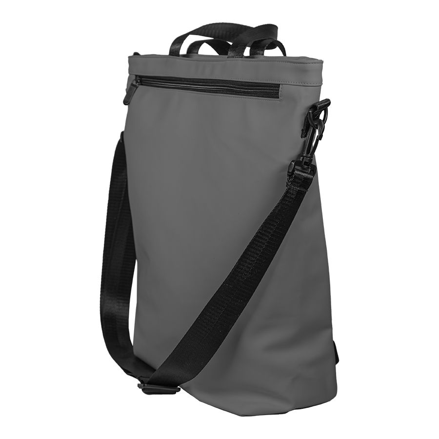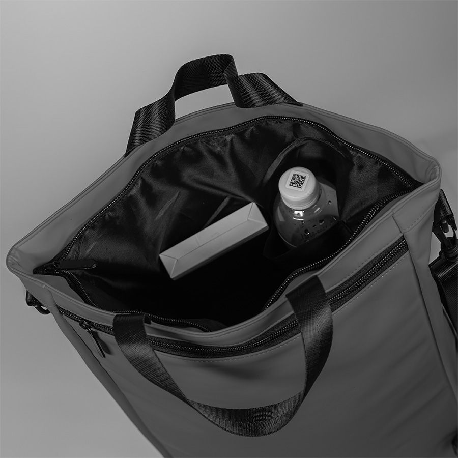 Рюкзак-сумка из 100% полиуретана. Можно использовать как сумку через плечо, можно носить как рюкзак. Лямки можно спрятать в карман. Ручка отстёгивается. Объём 15 литров.