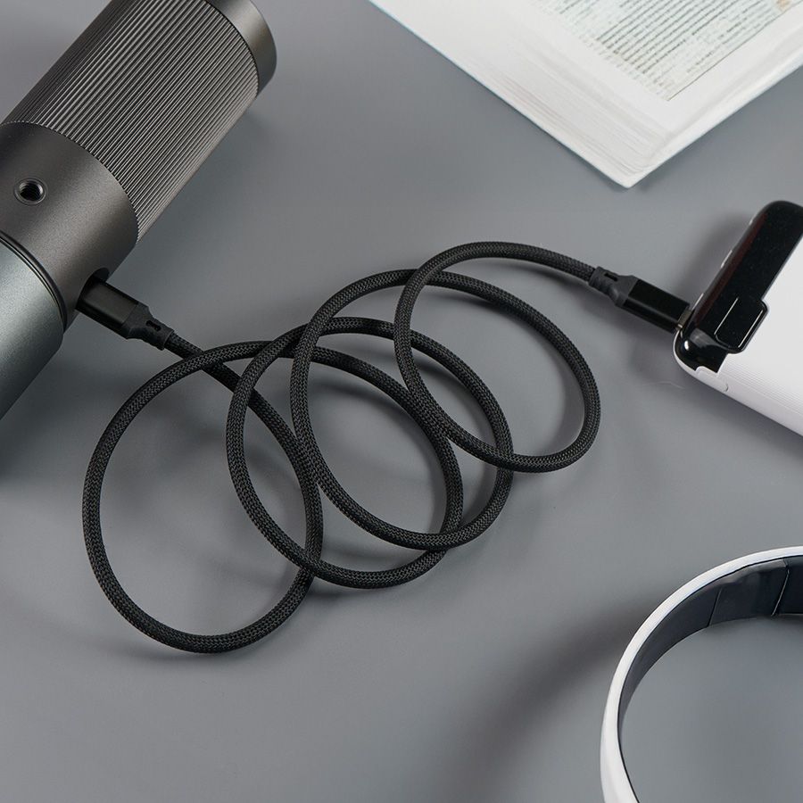 Данный кабель оснащен технологией магнитного самоскручивания, который позволяет его максимально удобно хранить и перевозить. Благодаря встроенным в оплетку магнитам с плотностью потока 650Гс кабель легко и аккуратно скручивается, оставаясь компактным и не путаясь. Прочная нейлоновая оплетка обеспечивает долговечность и устойчивость к износу, а длина в 1м делает его удобным для использования дома, в машине или офисе.Кабель поддерживает высокую мощность зарядки до 100Вт по современным протоколам быстрой зарядки PD и QC. Этой мощности будет достаточно даже для зарядки ноутбука. А скорость передачи данных в 480Мб с гарантирует быструю передачу файлов без задержек. Технические характеристики:Материал оплетки: нейлонТип коннектора 1: Type-CТип коннектора 2: Type-CПлотность магнитного потока: 650ГсДлина кабеля: 100смТолщина кабеля (диаметр): Ø4.1ммМаксимальное номинальное напряжение: 20ВМаксимальный номинальный ток: 5АМаксимальная номинальная мощность: 100ВтПротоколы быстрой зарядки: Power Delivery (PD), Quick Charge (QC) Максимальная скорость передачи данных: 480Мбит с Совместимые устройства: мобильный телефон, персональный компьютер, ноутбук