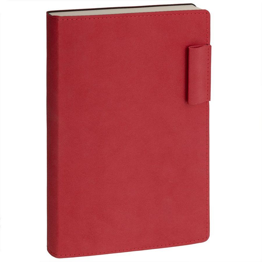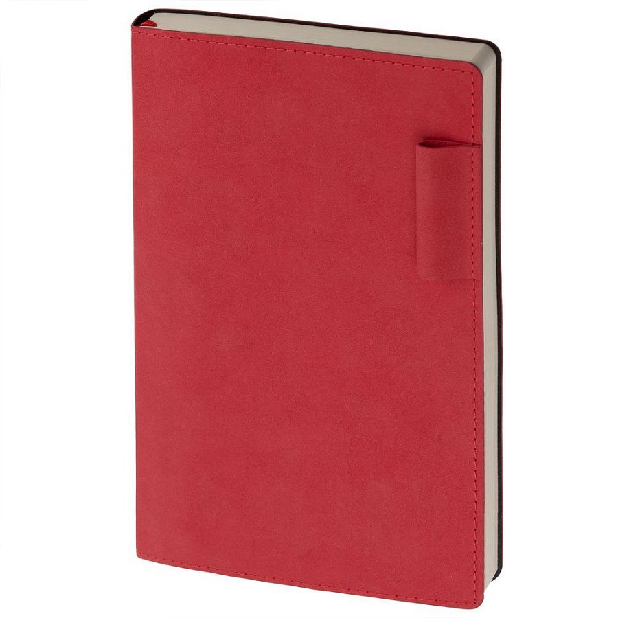Ежедневник с гибкой обложкой, выполнен из материала Nubuck, красный РР, дополнен петлей-лейблом для ручки и ляссе в цвет материала.