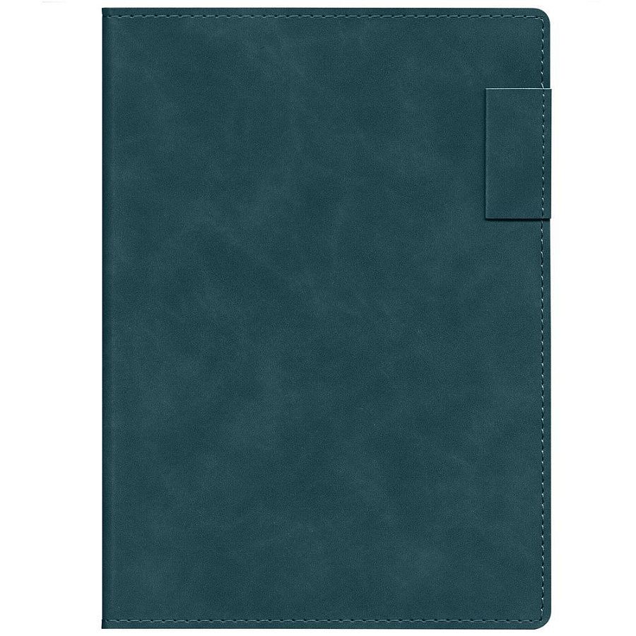 Ежедневник 17х24 см, с гибкой обложкой, выполнен из материала Nubuck Touch, темно-зеленый VV, дополнен петлей-лейблом для ручки и двойным ляссе в цвет материала.