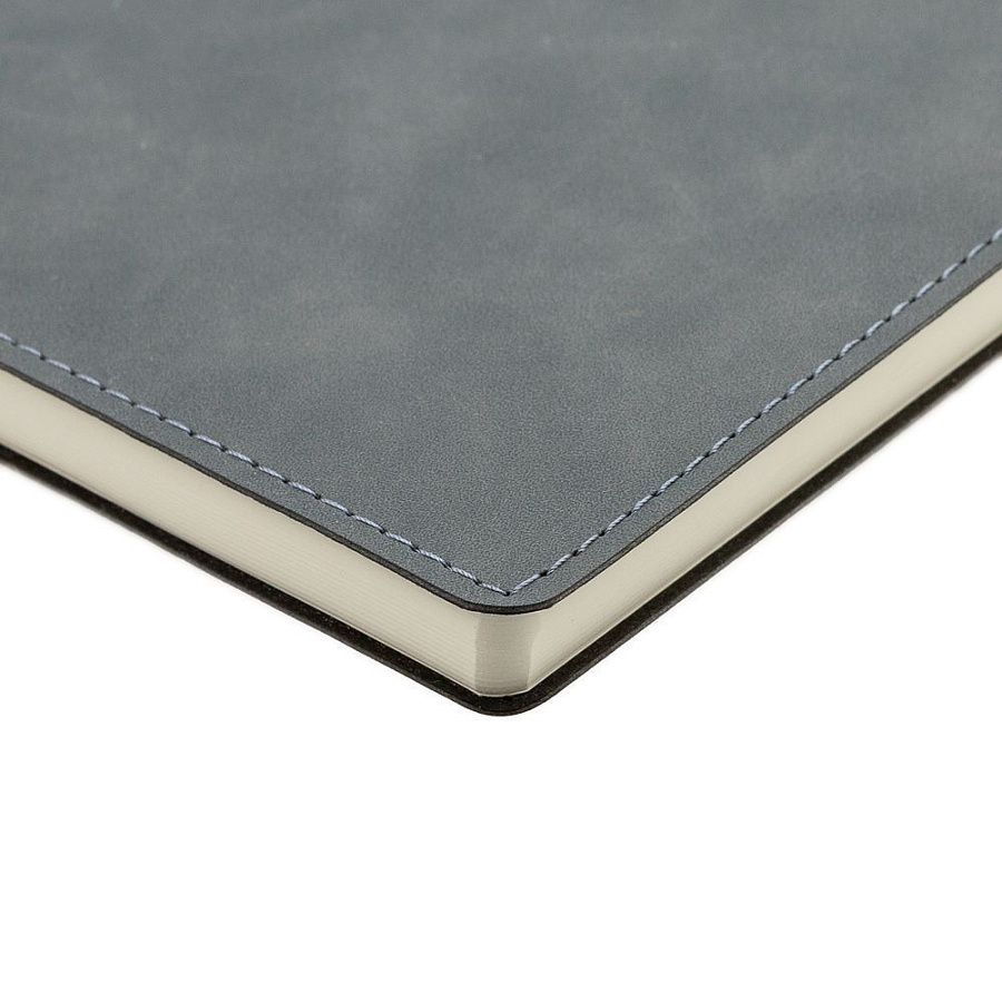Ежедневник 17х24 см, с гибкой обложкой, выполнен из материала Nubuck Touch, темно-серый ЕЕ, дополнен петлей-лейблом для ручки и двойным ляссе в цвет материала.