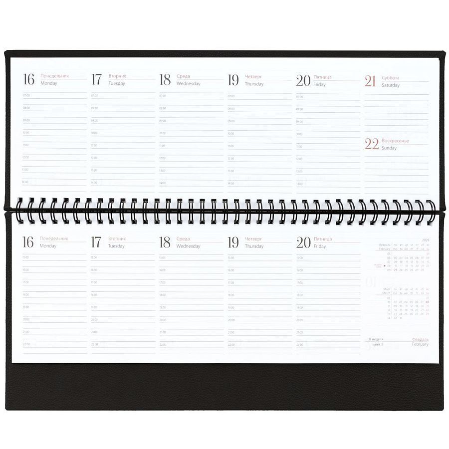 Планинг с твердой обложкой с поролоном, выполнен из материала La Fite, черный АА.