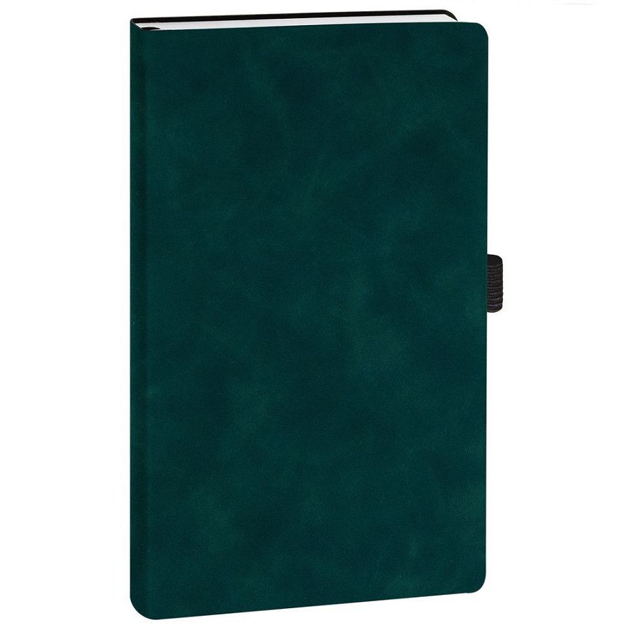 Ежедневник с гибкой обложкой, выполнен из материала Nubuck Touch, зеленый VV, дополнен ляссе и петлей-резинкой для ручки черного цвета.