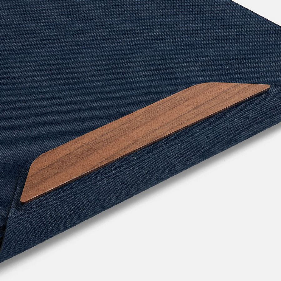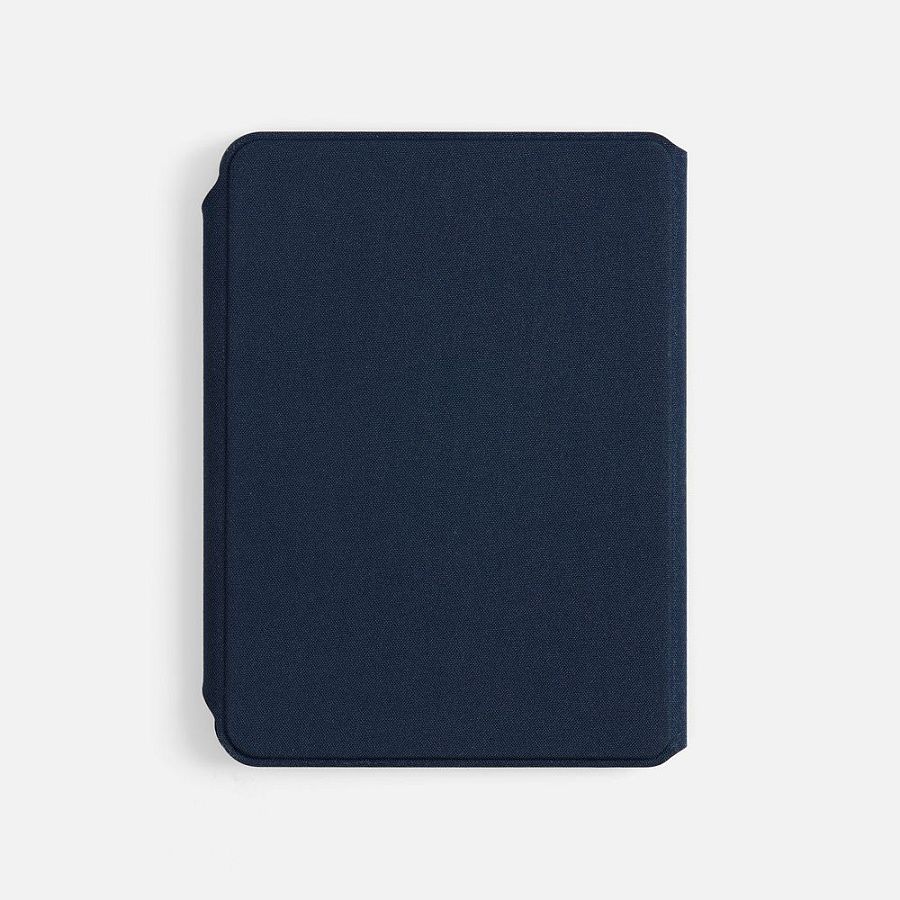 Обложка из ткани, на магнитной застежке с деревянной шильдой: