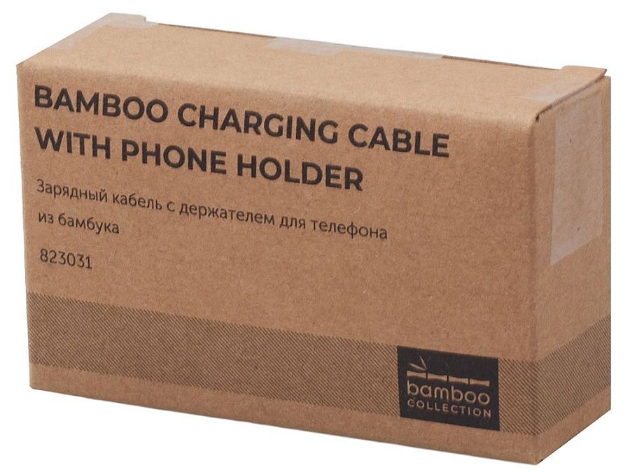 Корпус кабеля выполнен из натурального бамбука — экологически чистого и прочного материала. Деревянная подставка не только защищает кабель от перегибов, но и служит удобной опорой для телефона при видеозвонках, прослушивании музыки или просмотре видео.