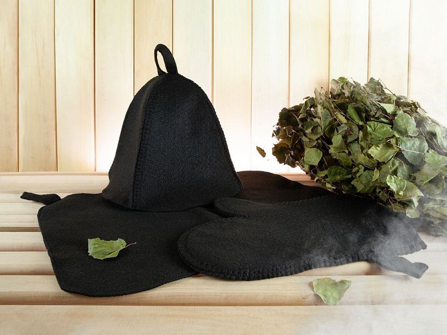 Банный набор «Парилка» станет отличным подарком для любителей отдыха в бане или сауне. Войлочная шапка защитит голову и волосы от высоких температур при банных и SPА-процедурах, коврик позволит с комфортом отдыхать на горячих полках, а рукавица — безбоязненно поддать пару или закрыть заслонку печи.
