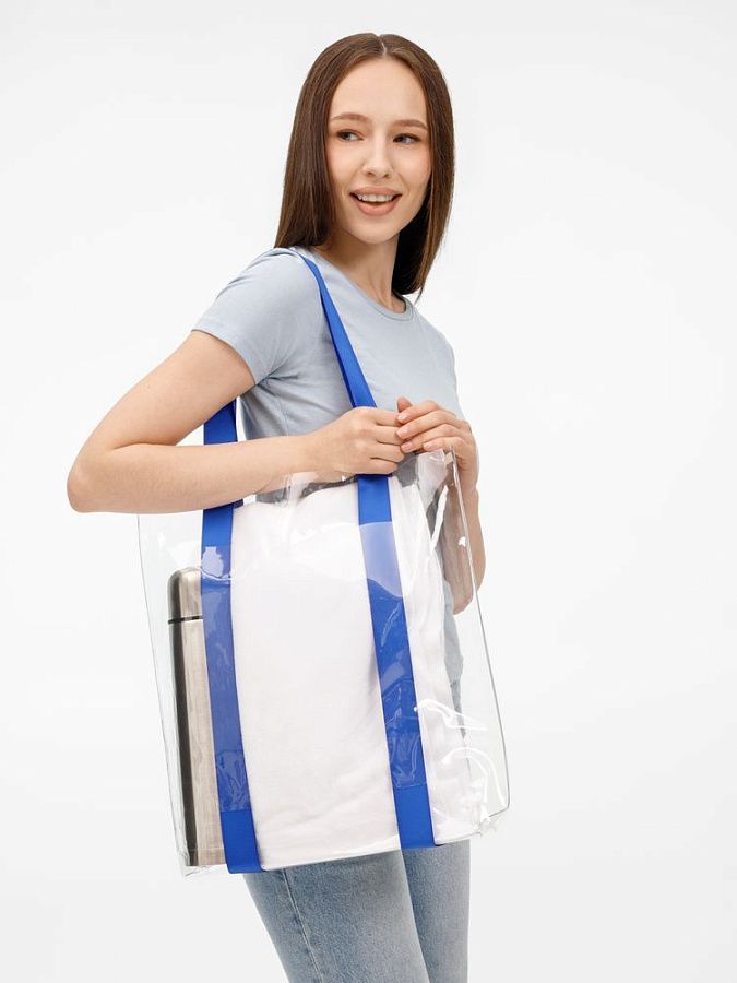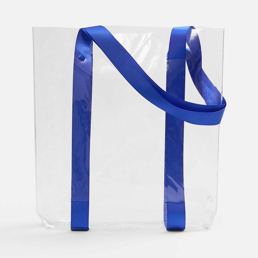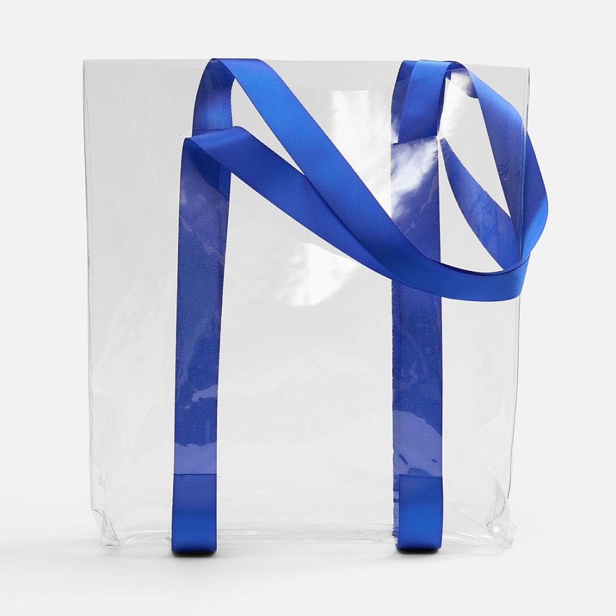 Прозрачные сумки никогда не выйдут из моды. А цветные ручки легко впишутся в брендбук и точно передадут настроение, которое хотелось бы транслировать.