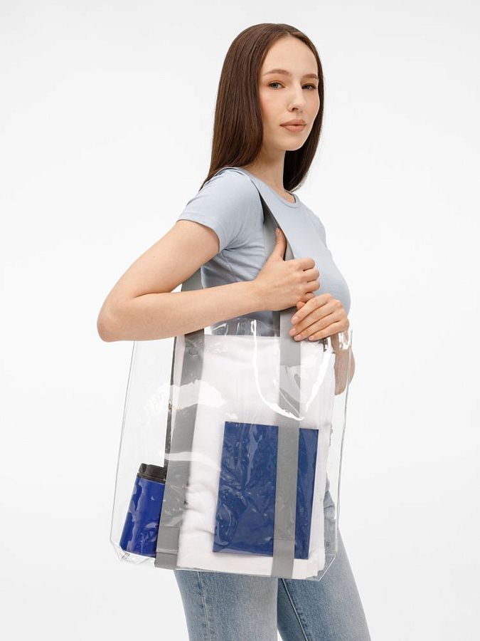 Прозрачные сумки никогда не выйдут из моды. А цветные ручки легко впишутся в брендбук и точно передадут настроение, которое хотелось бы транслировать.