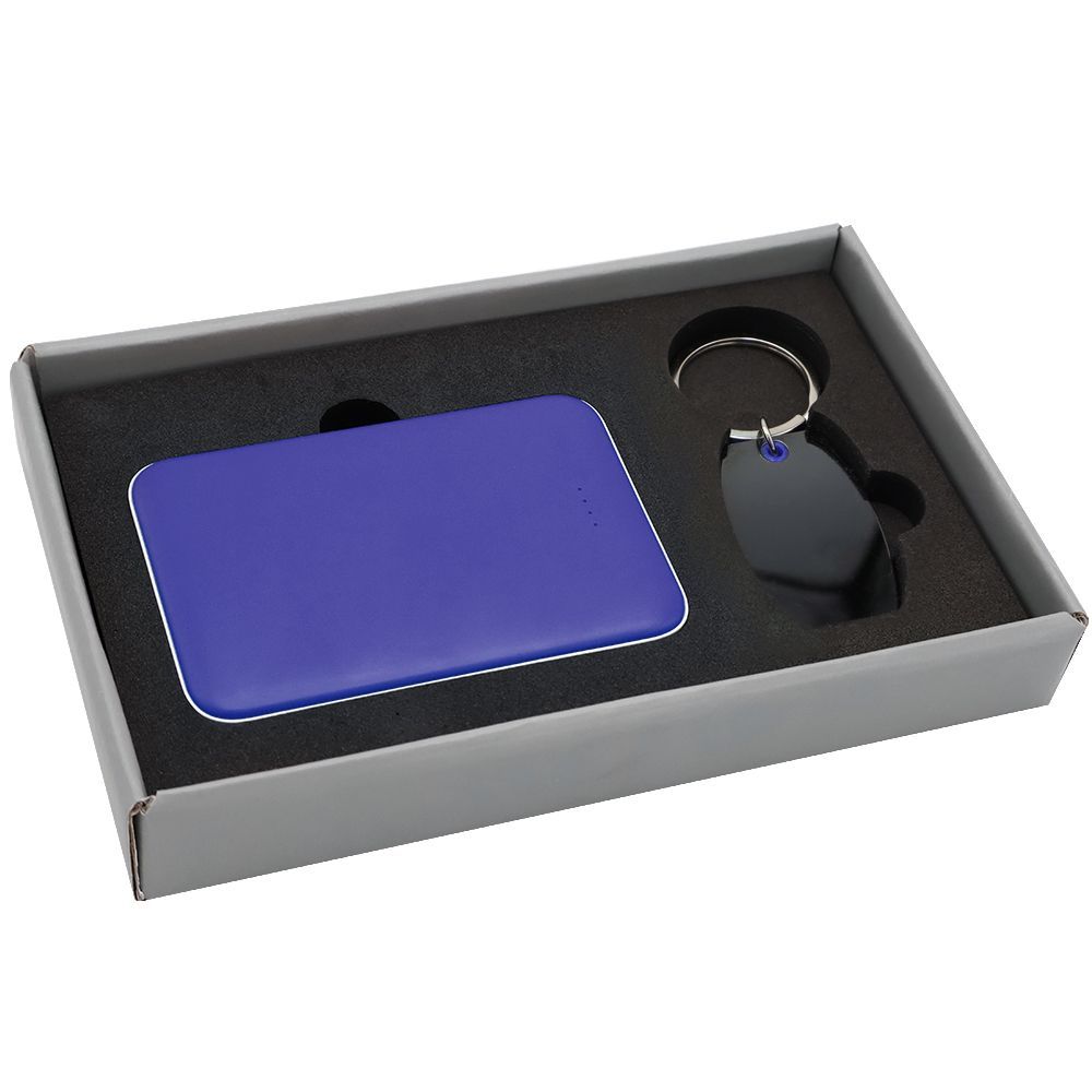Подарочный набор в элегантной цветной картонной коробке серого цвета с конструкцией крышка-дно. Внутри расположены аккуратно закрепленные на ложементе внешний аккумулятор емкостью 5000 mAh и металлический карманный брелок. Внешний аккумулятор обладает компактным дизайном и обеспечивает надежный запас энергии для мобильных устройств в пути, а стильный металлический брелок станет практичным и эстетичным аксессуаром для ключей. Этот набор идеально подходит в качестве презента для тех, кто ценит удобство, качество и современный стиль.