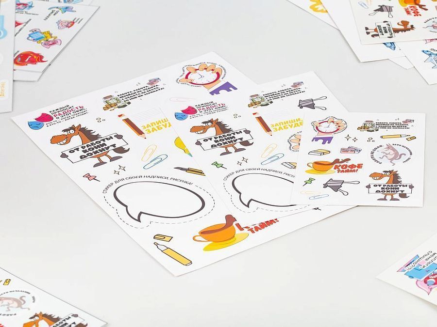 В стоимость входит полноцветная цифровая печать наклеек на формате А6.