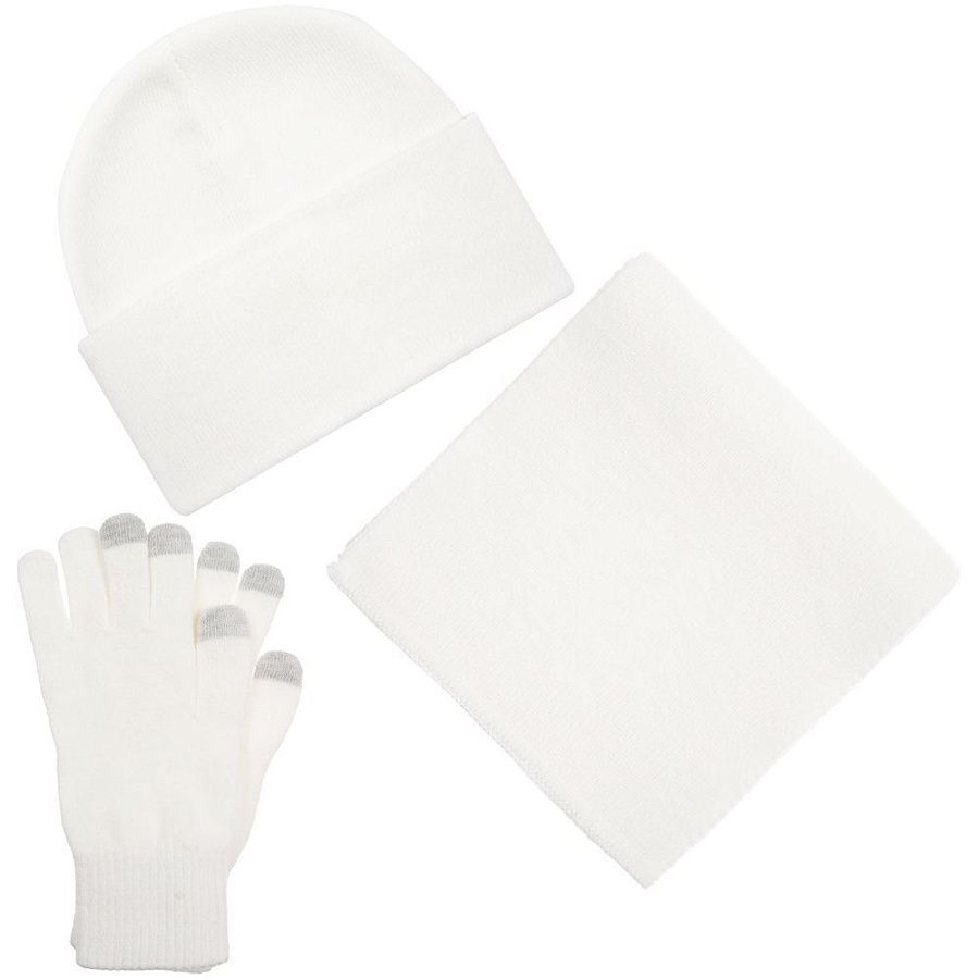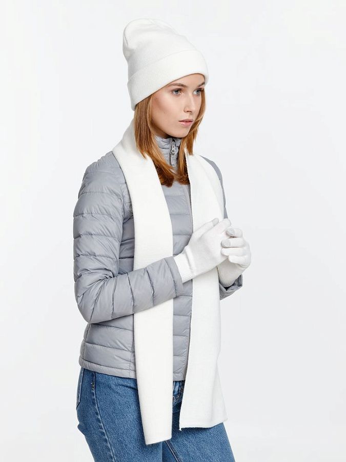 В комплект входят двухслойная шапка с регулируемым отворотом и легкий однослойный шарф из мягкой акриловой пряжи, сохраняющие тепло и защищающие от ветра, а также эргономичные перчатки со специальными токопроводящими волокнами на кончиках пальцев, в которых можно свободно пользоваться смартфоном даже в холодную погоду. Универсальная цветовая гамма и лаконичный дизайн делают набор органичным дополнением к любой верхней одежде.