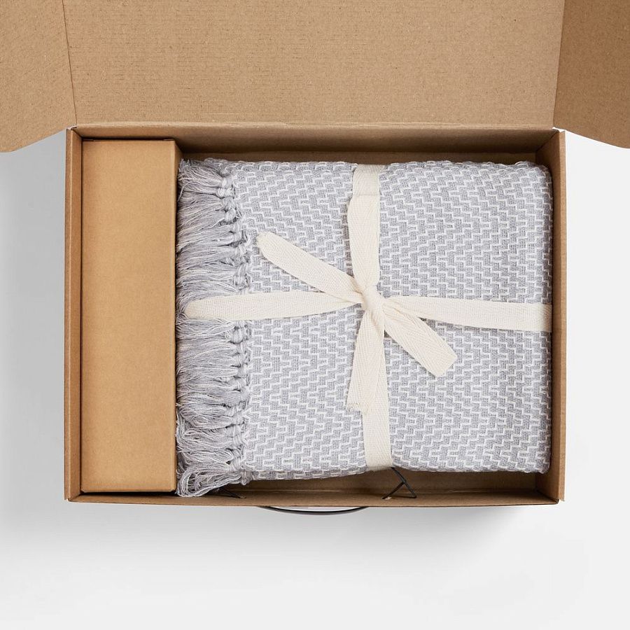 плед - хлопок 80%, полиэстер 20%, плотность 260 г/м²; флакон - стекло, палочки из файбера; коробка - микрогофрокартон