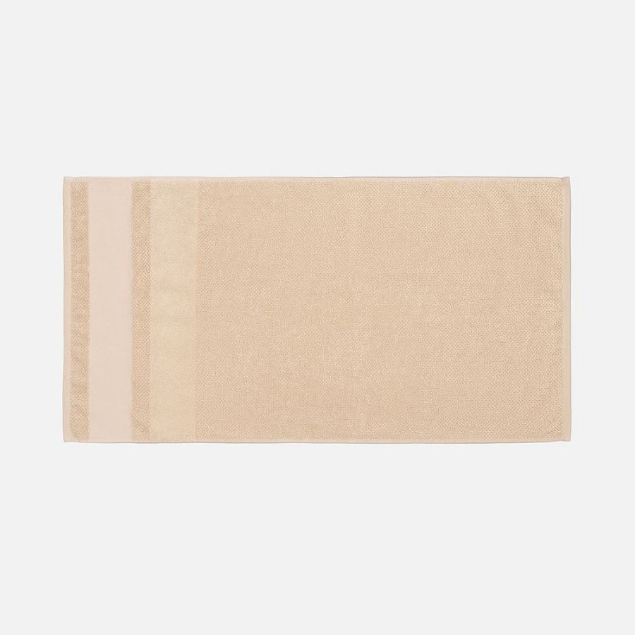 Пышная рельефная структура создает эффект роскошного спа-ухода и быстро впитывает влагу благодаря расположенным пучками петлям, а изящная полоса из стриженных петель с эффектом велюра добавляет ему мягкости и элегантности. Практичный гладкий бордюр станет идеальным холстом для нанесения символики и позволит создать уникальный персональный подарок.