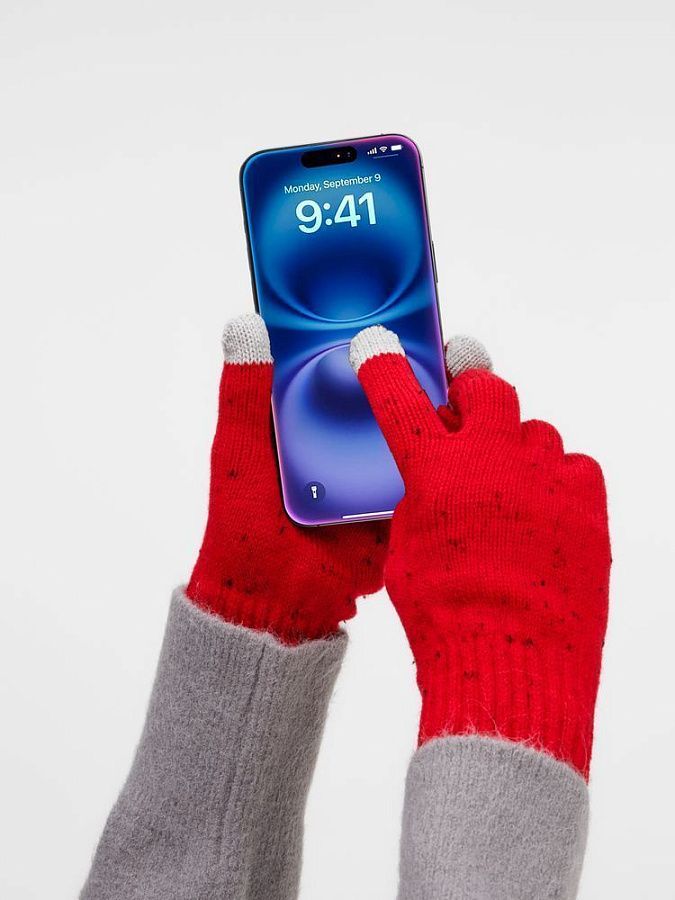 Перчатки Spotti Senso с токопроводящими волокнами на кончиках пальцев позволяют легко управлять смартфоном в любой мороз. Эргономичный крой и эластичная пряжа обеспечивают удобную посадку, сохраняя тепло и свободу движений. Как и в шапке, здесь использованы контрастные нити — визитная карточка коллекции.