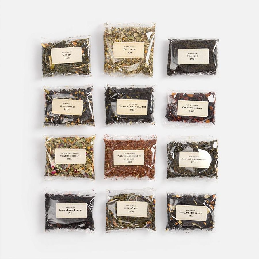 В наборе 12 видов чая: