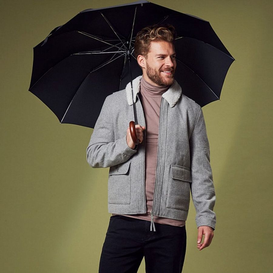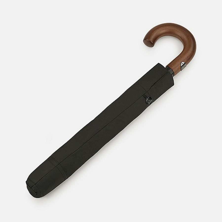 Идеальная модель для тех, кто не задается целью найти легкий и короткий складной зонт-«механику», а скорее, обрадуется старому доброму увесистому и основательному полуавтомату. У модели ветроустойчивая конструкция. Рукоять выполнена из массива дерева и благодаря натуральности материала невероятно комфортно ощущается в руке.