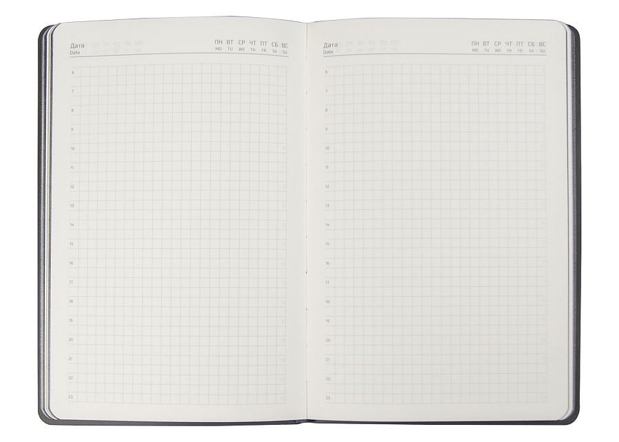 Ежедневник в гибкой обложке. Поверхность материала Soft Touch Latte матовая, с приятной на ощупь однородной фактурой. Минималистичная и строгая.