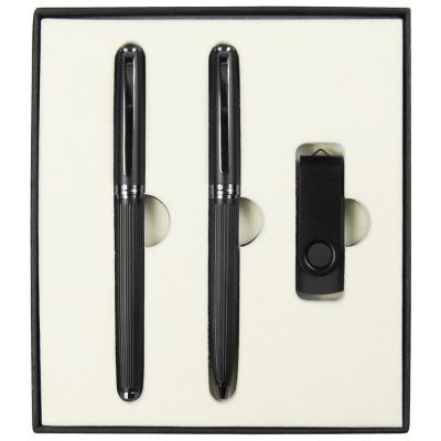 Набор подарочный Solution Prestige Trio (шариковая ручка, ручка роллер, флешка), черный
