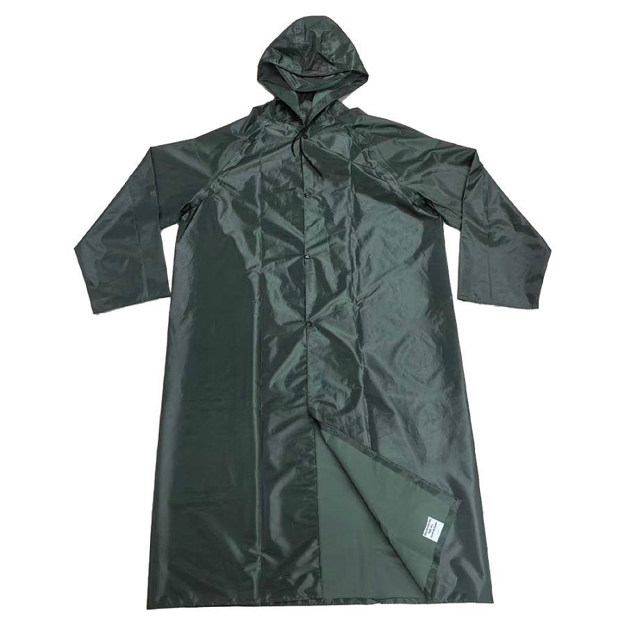 Унисекс-модель из плотного полиэстера с водоотталкивающей пропиткой. Длинный крой до колена, капюшон с утягивающими шнурами и застёжка на кнопках обеспечивают комфорт и надёжную защиту в дождливую погоду. Свободный силуэт не сковывает движения, подходит для мужчин и женщин.