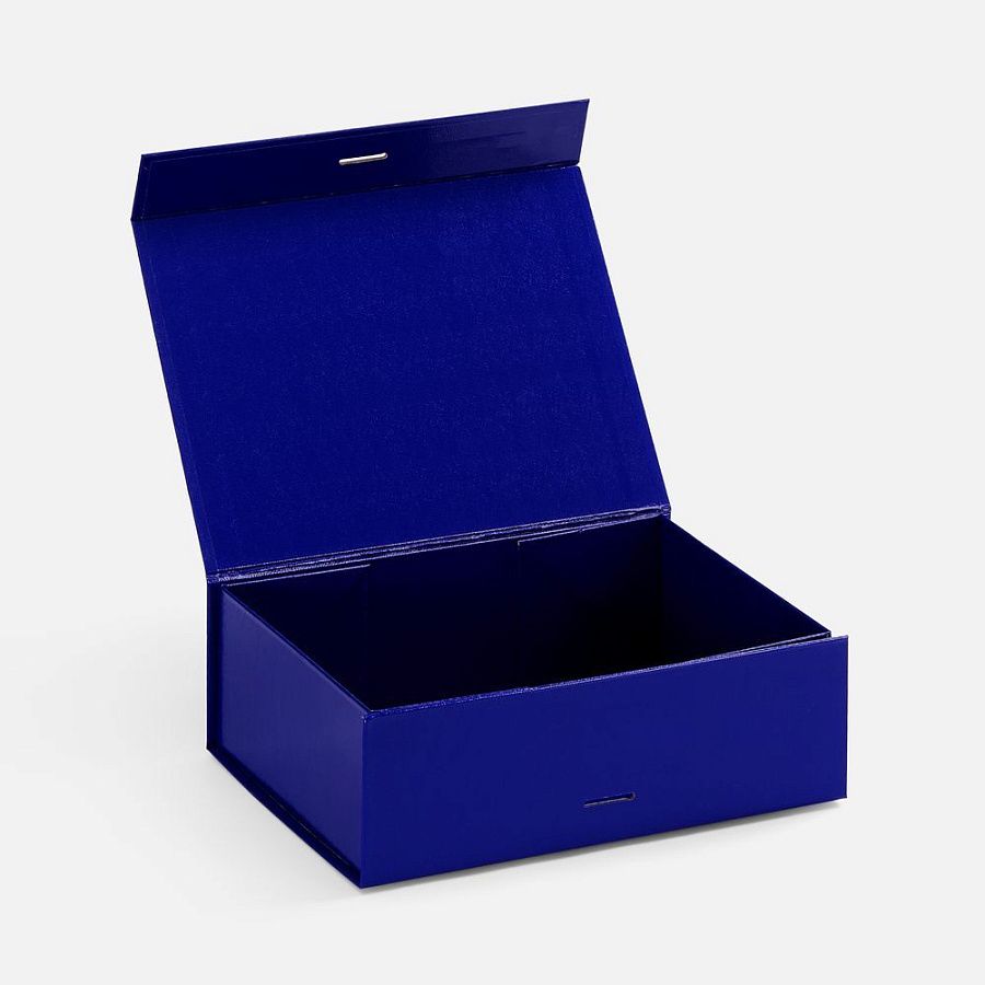 Коробка из переплетного картона с лайнером, ламинированым полуглянцевой текстурной пленкой и устойчивого к царапинам. Крышка на двух магнитах дополнительно фиксируется репсовой лентой.Толщина картона 2 мм.