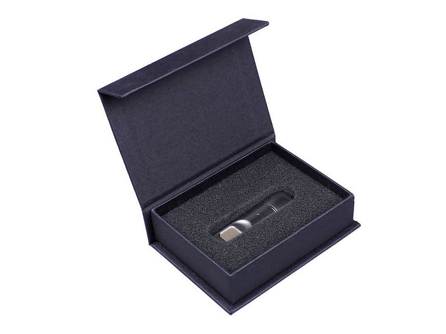 Классическая металлическая флешка с колпачком и сканером отпечатков пальцев.