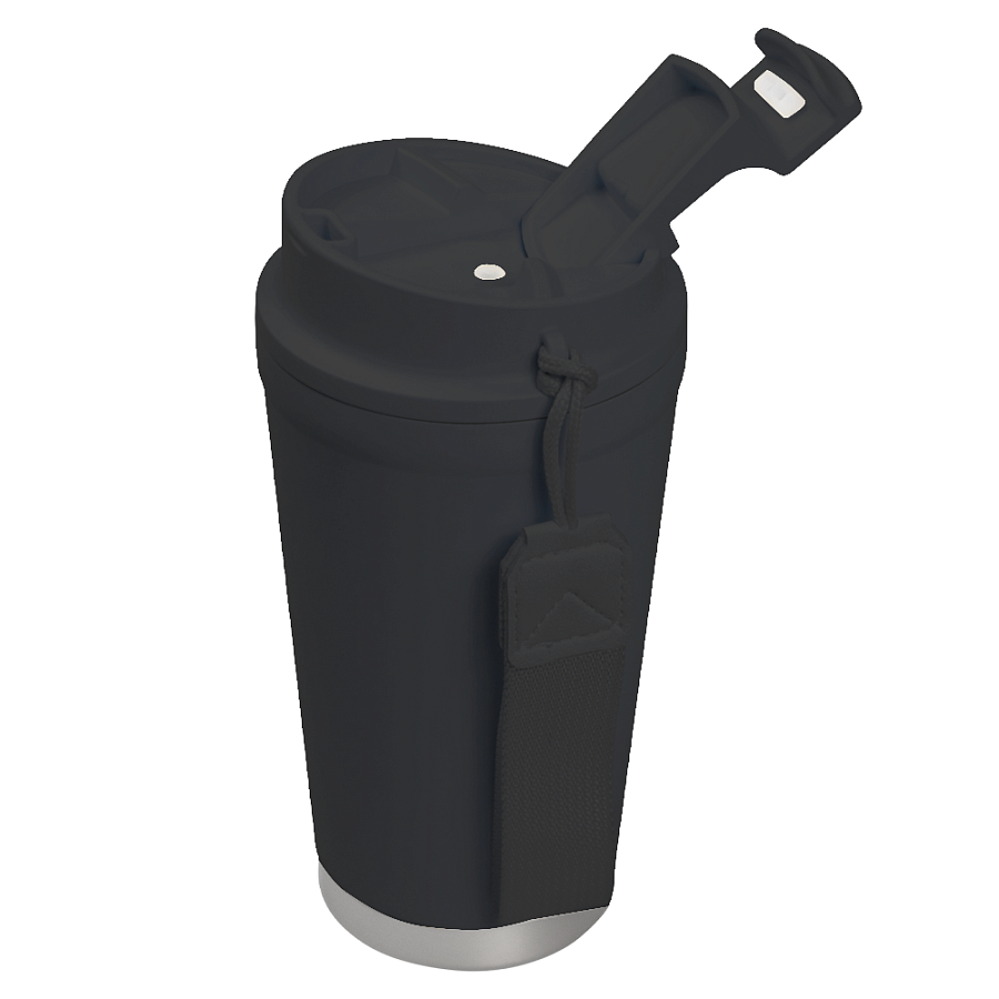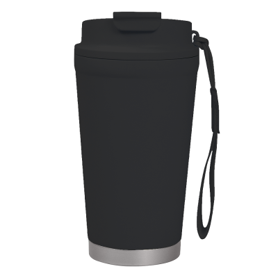 Металлическая термокружка объёмом 410 мл с матовым покрытием и контрастным металлическим основанием. Оснащена герметичной крышкой с откидным клапаном и удобным ремешком для переноски. Поддерживает температуру напитков и подходит для использования в дороге, на работе и в путешествиях.