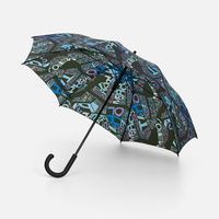 В стоимость входят запечатка полотна бесшовным паттерном методом сублимации, раскрой, пошив купола и сборка изделия. В основе зонта использован каркас с цветными элементами на спицах.