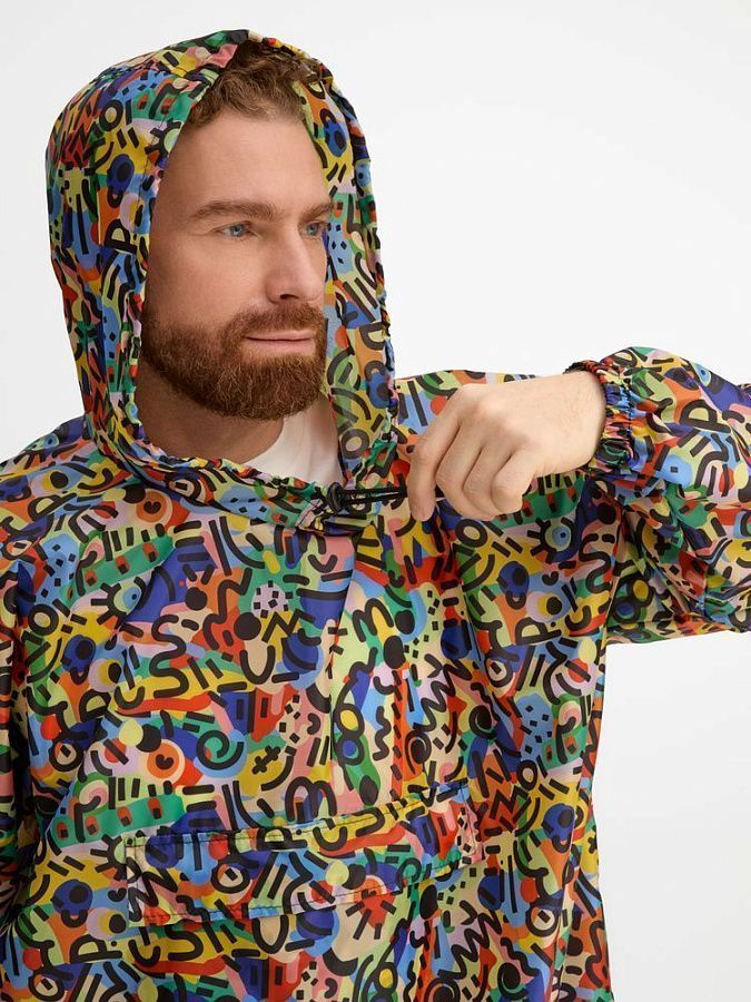 Приложите к заказу оригинал-макет закольцованного бесшовного (endless) узора или паттерна в виде квадрата или прямоугольника с разрешением 300 dpi в масштабе 1 к 1. Полные технические требования к оригинал-макетам смотрите в пункте «Сублимация».Дождевик-анорак с капюшоном из ткани таффета.