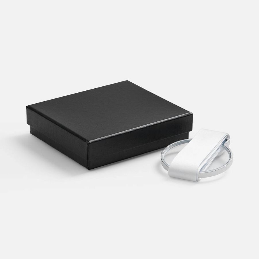 8,7х7,5x0,6 см; лента: 90х3 см; упаковка: 14х12х3,5 см