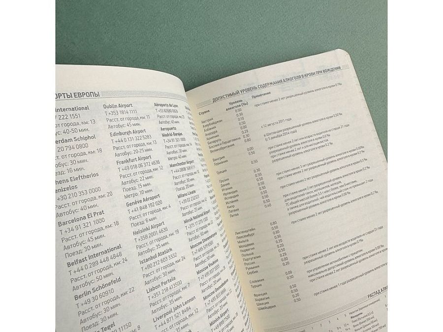 • справочная информация на 19 страницах (аэропорты Европы, штрихкоды, международные телефонные коды, цифровые автомобильные коды, энергетическая и питательная ценность продуктов, национальные и религиозные праздники, единицы измерения, страны мира, размеры одежды, форматы бумаги и др.);