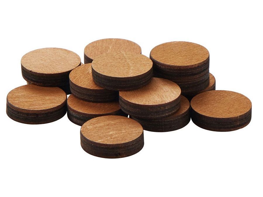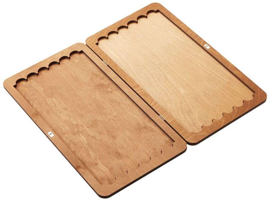 В комплект входят фишки из фанеры двух оттенков, гармонирующих с базовым цветом доски.