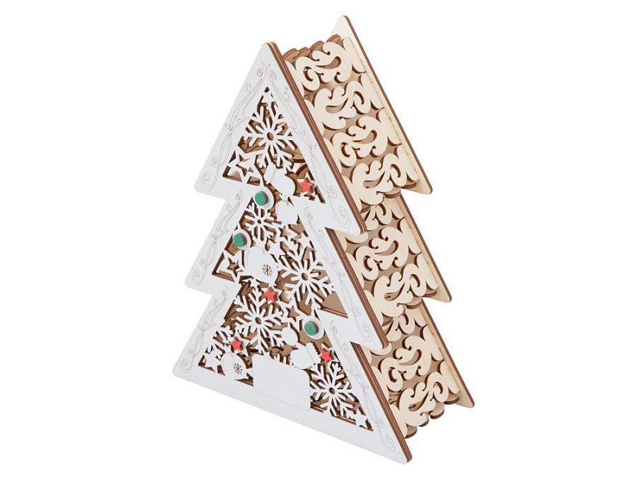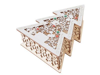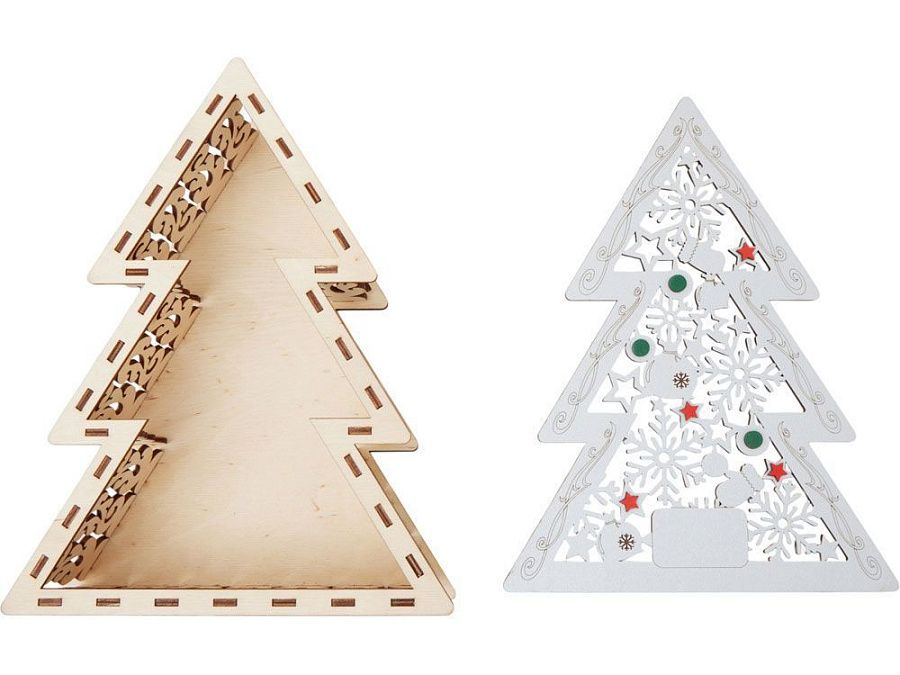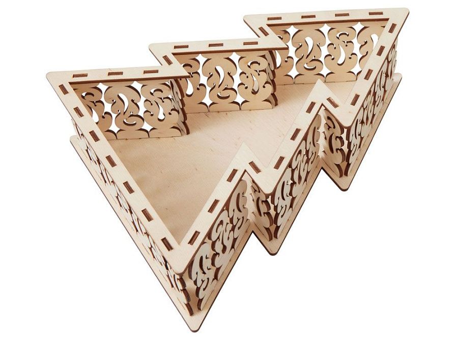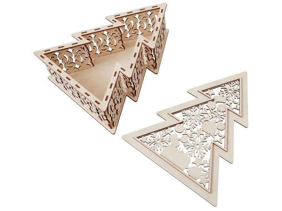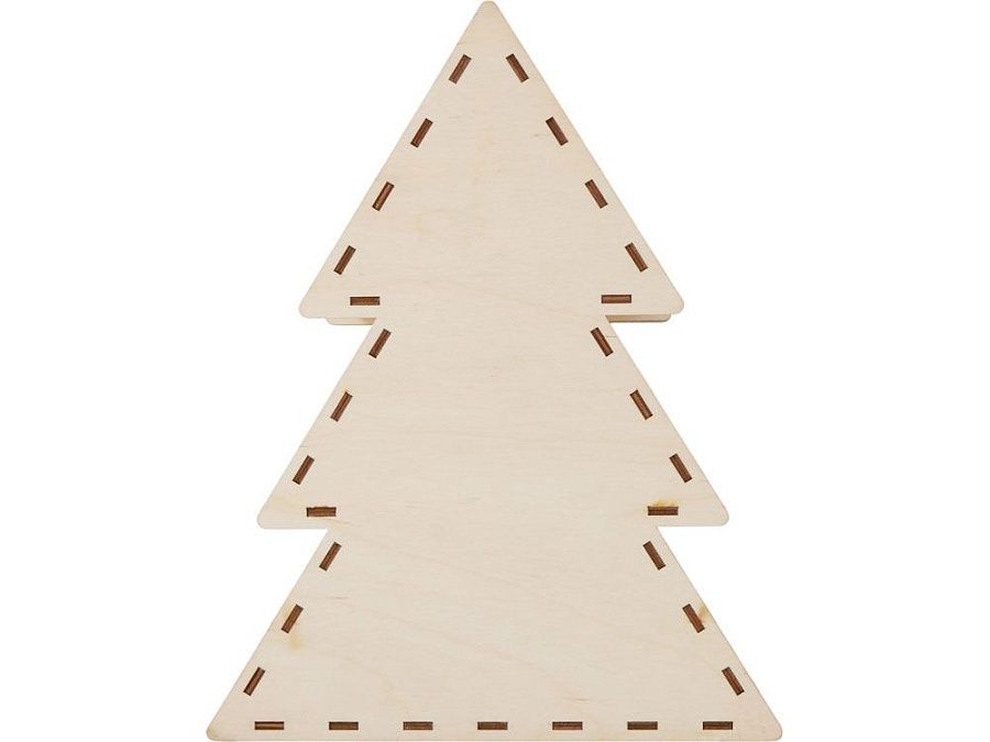 Шкатулка из натуральной березовой фанеры в форме ёлки. Минималистичный дизайн и качественный материал делают её практичным и эстетичным аксессуаром.