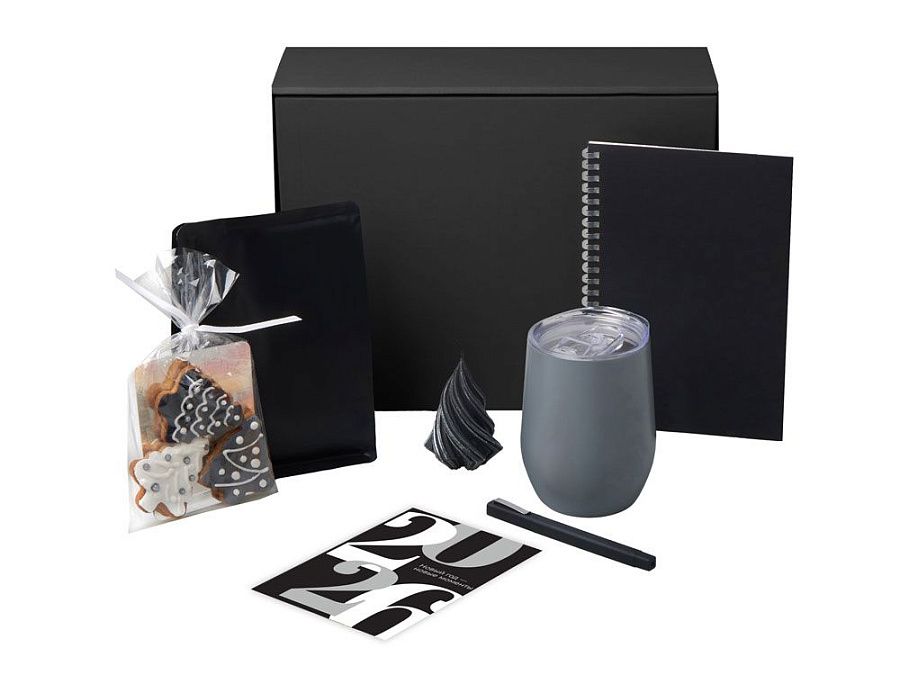 Набор «Re:Start» - о маленьких ритуалах, которые делают каждый день особенным. Налейте в термокружку любимый ароматный кофе, вдохните аромат и позвольте себе немного тишины. Остановитесь, подумайте, что вы чувствуете и чего хотите. Этот блокнот можно использовать как личный дневник, место для идей, или как рабочий блокнот в новом году — ведь начинать писать с чистого листа всегда особенно приятно. Имбирные пряники добавят сладкую нотку уюта и напомнят: даже в привычных днях можно находить тепло и вдохновение.
