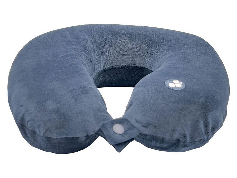 Удобная кнопочная застёжка надёжно фиксирует подушку на шее, а в комплект входит прочный круглый чехол на молнии — для компактного хранения и перевозки.
