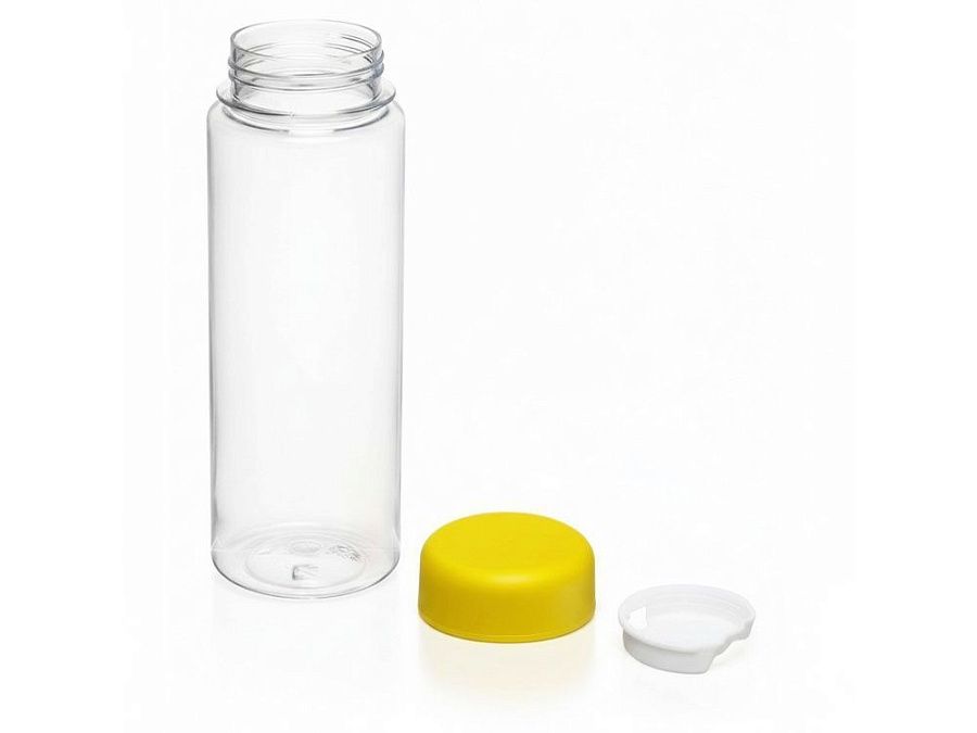 Лаконичный внешний вид позволяет нанести на аксессуар логотип компании. Прозрачный корпус дает возможность контролировать количество содержимого. Благодаря съемному фильтру в воду можно добавлять лимон, мяту и фрукты. Силиконовое кольцо предотвращает протекание, а крышка надежно закрывает бутылку.
