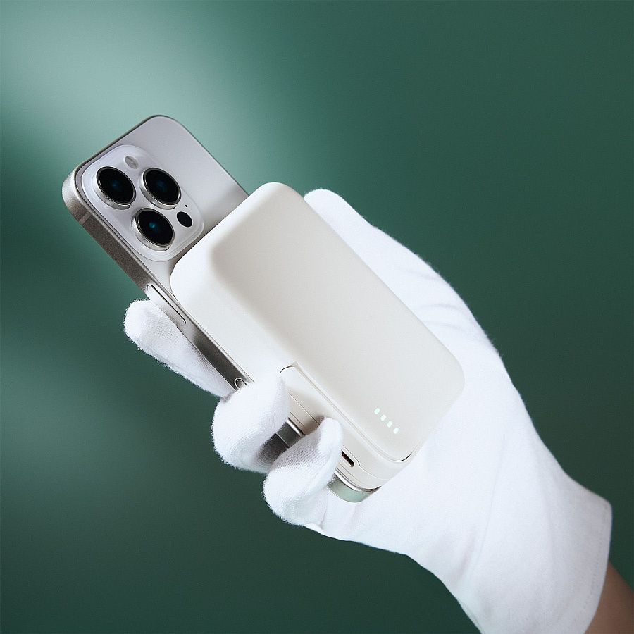 Мощное магнитное кольцо MagSafe обеспечит надежную фиксацию телефона как в вертикальном, так и горизонтальном положении, гарантируя стабильный контакт и эффективную передачу энергии. Удобная встроенная подставка позволяет удобно расположить телефон на рабочем столе. Эргономичный дизайн аккумулятора дополнен приятным на ощупь покрытием Soft Touch.