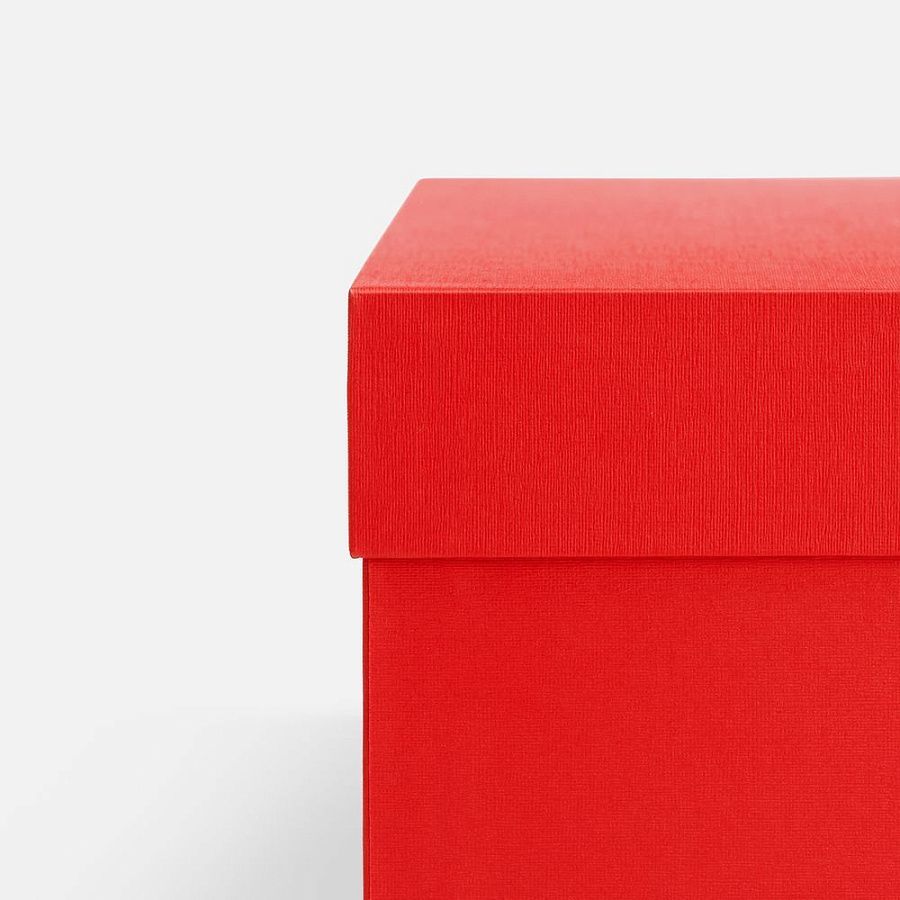 Коробка изготовлена из переплетного картона, кашированного дизайнерской бумагой.