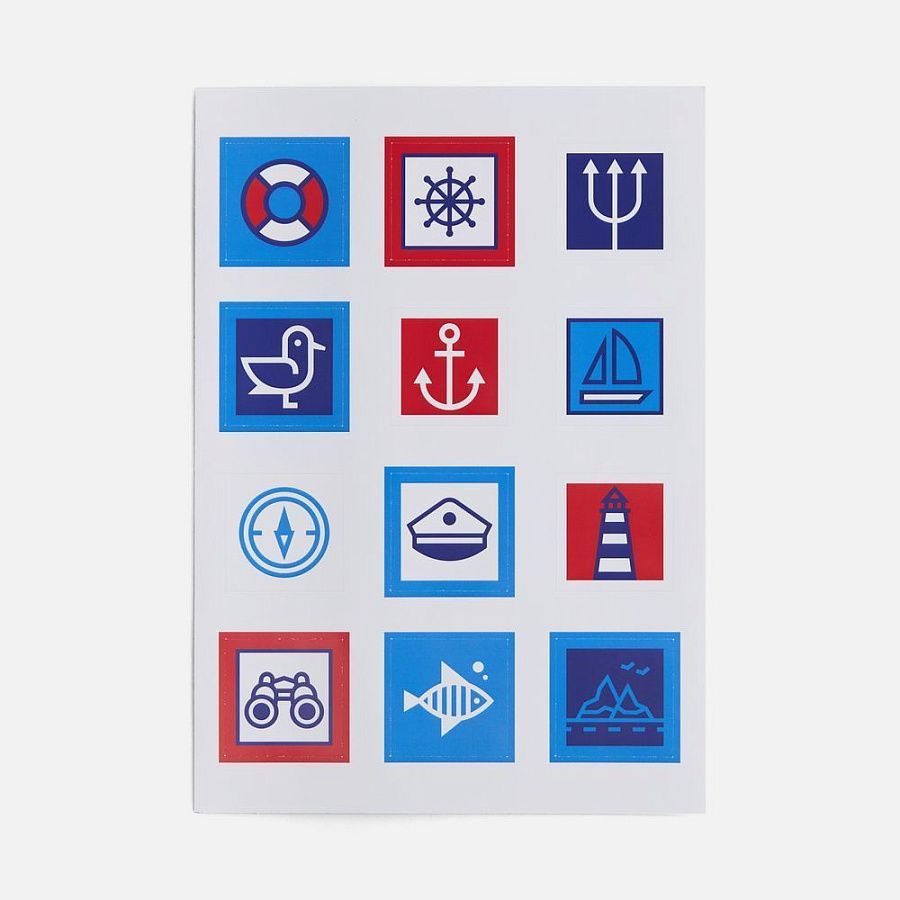 В каждой части общего рисунка изображены главные символы, связанные с морской отраслью
