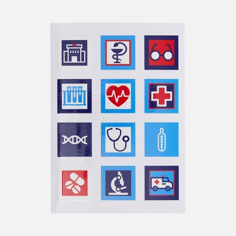 В каждой части общего рисунка изображены главные символы, связанные с медициной.